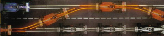 Jetzt die erfreuliche Nachricht: die Autos bleiben im Slot und behalten die dynamischen Fahreigenschaften. Sie können aber nur an den Weichen die Spur wechseln, das gelingt durch die schnelle Reaktionszeit der Weichen sogar bei kurz hintereinander fahrenden Fahrzeugen.
